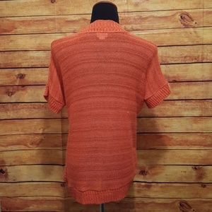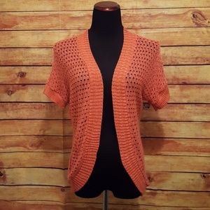 This Coral Colored Knit Cardigan would pair perfect with a pair of dark wash jeans. There is a small snag on the back.