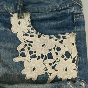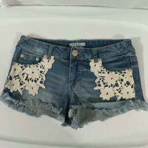 Mossimo Lace Raw Hem Denim Jean Short Shorts - size 7. Gently used condition.