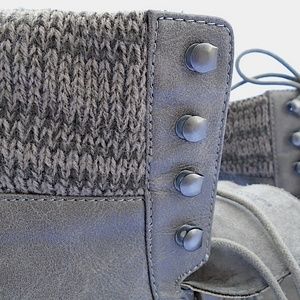 Stay warm and fashionable this Fall and Winter with these kick ass Mossimo brand sweater wedge boots. Sweater cuff detail on top, soft and makes these comfortable to wear. Lace up with 4 additional clasps at top (pictured). These are in great shape, worn maybe 3 times. Size US Women's 8.5 but fit more like an 8. Heel is 4.5" high with a 1" platform in the front.