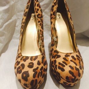 Leopard faux suede round toe 1" platform 5 3/8" heels. Purchased for photoshoot and very little to non sign of wear and tear. Firm price unless bundling. Please let me know if you have any questions