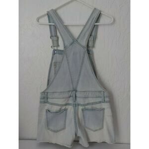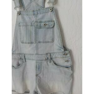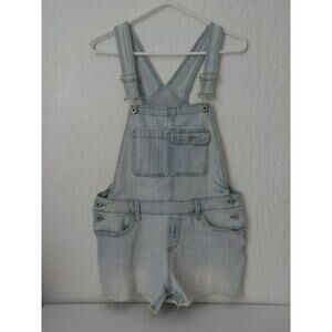 Mossimo Light Blue Denim Overall Shorts Women size Medium Raw Hem Button Up