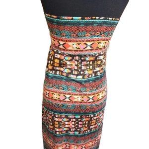 Gently used, like new!!!! Strapless, empire waisted bodice. Beautiful multi color tribal print! Women's size S/P, but could also be a cute, early maternity summer dress for a small petite. Maxi length.