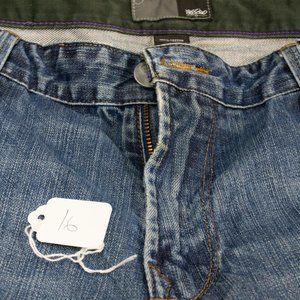 Mossimo Mens Jeans, Perfect color, Worn to soft perfection, Size 34 x 34. Zip front, studed watch pocket,