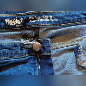 Elevate your style with these classic blue women's jeans. Perfect for any occasion, these jeans offer comfort and a timeless look. purposely faded and added paint splatters. pre-owned in nice condition. see pictures. they are part of the description. measurements are approximate. power stretch.