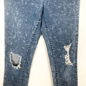 Mossimo Mid-Rise Skinny blue jeans. Tie-dye. Distressed. Metal button and zipper closure. 5-pocket. In good used condition. No visible flaws.