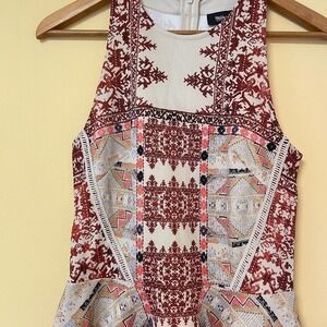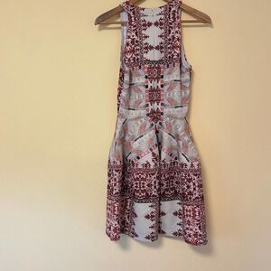 Mossimo Mosaic Stamp Print Skater Dress Small 4 6 Tan Red Fit Flare Ikat
