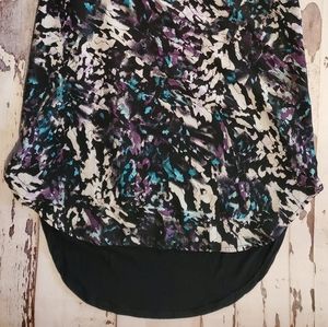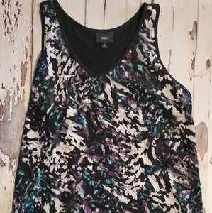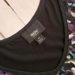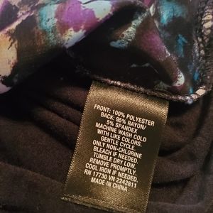 Made with 100%polyester in the front and 96% rayon & 5% spandex in the back. Can be worn with jeans or slacks.