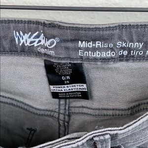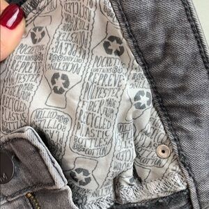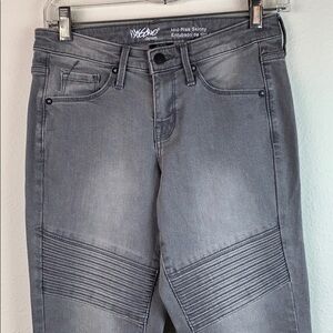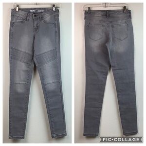 Great pair of gray factory fade skinny moto brushed stretch cotton twill/ soft denim. feels thick like jeggings.