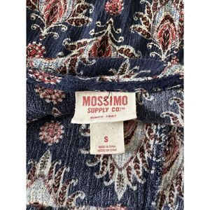 This beautiful navy blue Mossimo dress is perfect for the bohemian or peasant-style look you're going for. Made for women in a size small, it features a lovely geometric pattern and a scoop neckline with long sleeves. The dress falls above the knee and has a swing style that is both comfortable and fashionable.