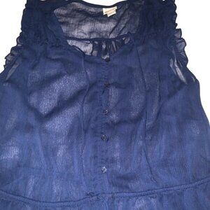 Mossimo Navy Sheer Sleeveless Ruffle Blouse With Button Front & Drawstring Waist