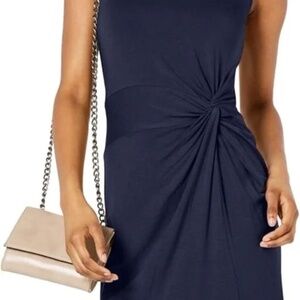 Effortless and flattering, this Mossimo navy dress features a sleeveless design with a chic side knot and ruched detailing that enhances the silhouette. Made from a soft, stretchy fabric, it’s perfect for work, dinner, or casual outings. A versatile piece that easily transitions from day to night.