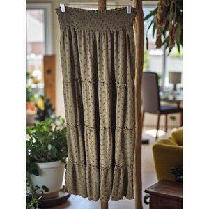 Mossimo Olive Boho Tiered Maxi Skirt – Smocked Waist – Size Small