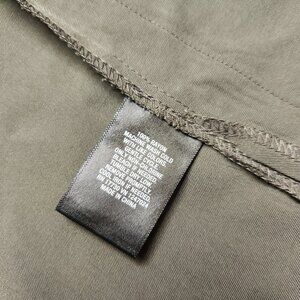 Can easily fit a M. Lightweight utilitarian army vibes. Rich olive green color with pockets and a belt. Great for any season.