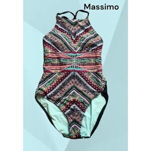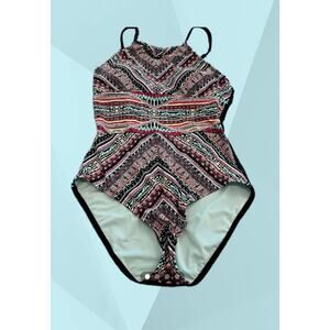 Mossimo One Piece Swimsuit Women Size M Colorful Tribal Aztec Lace Up Back