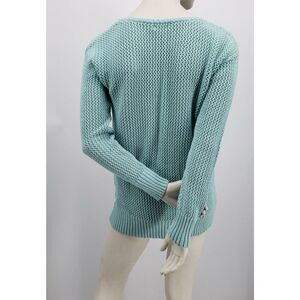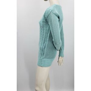 Mossimo Open Knit Tunic Sweater Women's Size Medium Green Scoop Neck Cable *Flaw