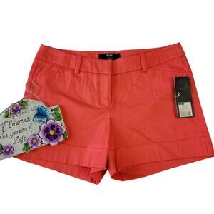 NEW Mossimo Women's Shorts Size 2 Orangish-Red Coral Preppy Cuffed Chino Flat Front 2% Stretch Midrise Classic Lightweight Zip