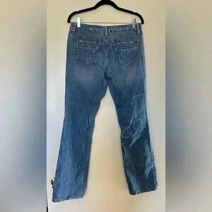 Adorable boot cut jeans. Some distress. Great shade of blue. Smoke free home.