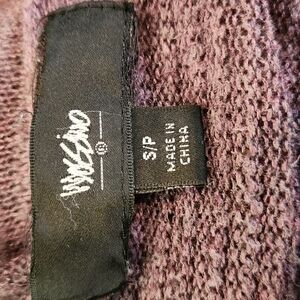 Length is a bit longer in the back for a flattering fit. Fabric has slight stretch. Beautiful muted purple. Perfect for layering