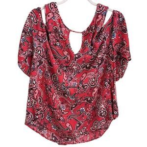 Mossimo Red Paisley Cold Shoulder Blouse Top XXL