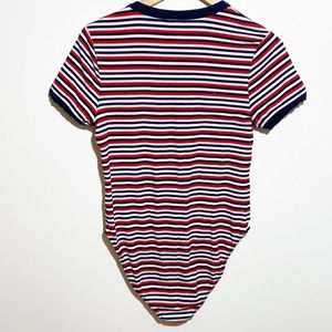 Mossimo Red White Blue Short Sleeve Snap Closure Bodysuit Women’s Size Large