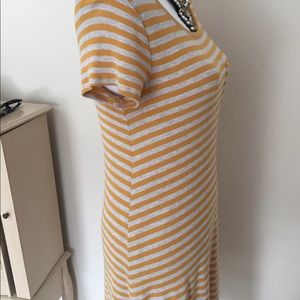 This mustard/ivory stripe dress is very stretchy, Flowy and comfortable. Excellent condition