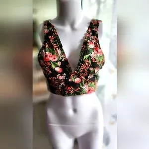 This is a vintage style Mossimo floral tankini top with roses and greenery on it! super cute