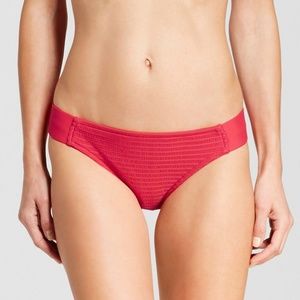 Mossimo Seersucker Cheeky Side Tab Swim Bikini Bottom Size S Melonade Red