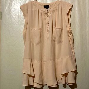 Mossimo Semi-Sheer Sleeveless Button Up Blouse Size L Ruffle Bottom