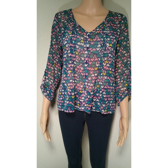 Super cute, flirty, sheer button down top. Perfect for Valentines day!!