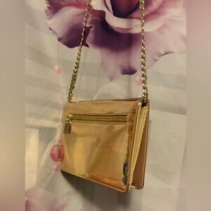 Mossimo Shiny Gold Crossbody or Shoulder Bag Wallet Style Gold Tone Chain Handle