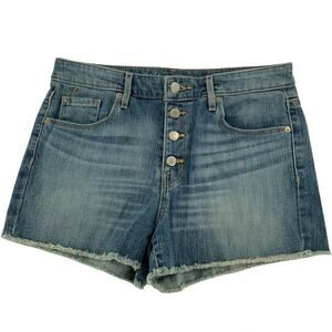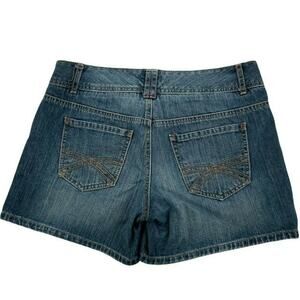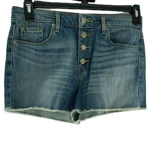 Mossimo Short Women's Size 8 High Rise Stretch Button Fly Cut Out Pockets Denim