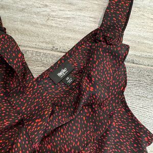 Mossimo Sleeveless Dress Black with Red Spots Front Ruffle Elastic Waist Midi