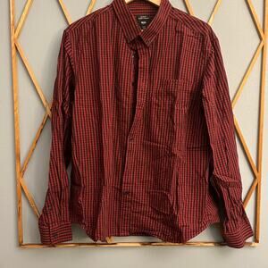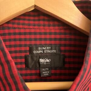 Mossimo red and black check slim fit dress shirt. Pocket on chest. Size XL
