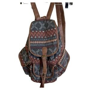 The Mossimo Southwestern Aztec Tribal Print Backpack is a stylish and versatile accessory for women. With a large size and rectangular shape, this backpack features a drawstring closure and brass hardware accents. The multicolor exterior, featuring a Southwestern pattern, is made of wool canvas with a matte finish. It also includes adjustable shoulder straps, lined interior and inner pockets for organization. Perfect for casual occasions, this backpack is ideal for school, summer camp, hiking, or any outdoor adventure with a unique tribal vibe. SMOKE FREE HOME