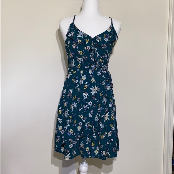 Blue floral dress. Armpit to armpit 18 inches. Shoulder to bottom of the dress 35 inches.