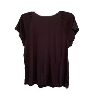 Mossimo Square Neck Tee in Black Jersey Knit. It has Cap Short Sleeves, has a Square Neck with a Silver and Black Stripe Accent panel. It is great for casual days at work, school, date night, night out with the girls, and Family Dinner. It would make a great Christmas Hanukkah Valentine’s Day Birthday or any Holiday gift!