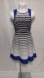 Color: Striped with solid blue accents on hem, neckline, and sleeves