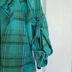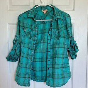 Mossimo Supply Co. Aqua/Green Plaid Cotten Button-Up Shirt Size Small Womens