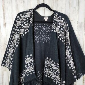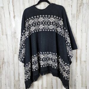 Mossimo Supply Co Aztec Print Fringed Poncho Sweater Black Size S/M