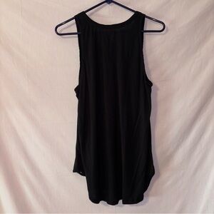 Chic black tank top with button-down front. Sleeveless design for easy layering.