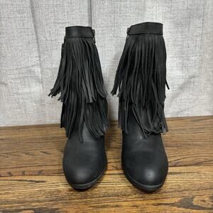 Mossimo Supply Co Black Fringe Leather Ankle Boots Women’s 10B Western Boho