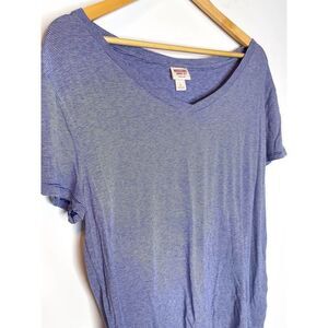 Mossimo Supply Co. Blue Striped V Neck T-Shirt Casual Top Large