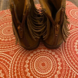 Mossimo Supply Co Boots Womens 8 Ankle Bootie Brown Suede Fringe Pull On Block