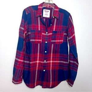 Mossimo Supply Co. Boyfriend Fit Blue & Red Plaid Flannel Shirt Size Small EUC