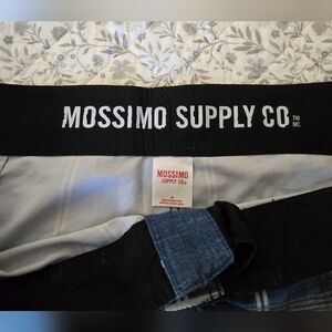 Gently used Mossimo Supply Co. cargo shorts for men, size 36, in blue plaid with pockets and an 11-inch inseam.