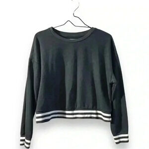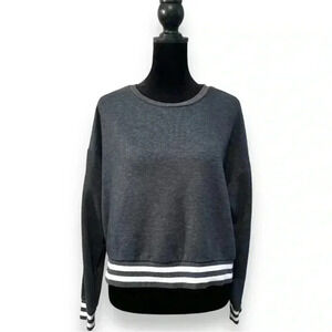 Mossimo Supply Co. Charcoal Gray Retro Cropped White Stripe Detail Sweatshirt