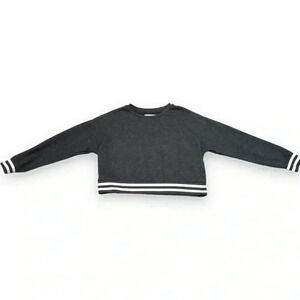 Great condition, women’s Large, dark gray with white stripe detail at bottom hem and end of long sleeves, retro style cropped crewneck sweatshirt