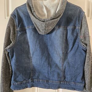 Mossimo Supply Co Denim Jean Jacket Hoodie XXL Blue Gray Knit Sleeves Casual