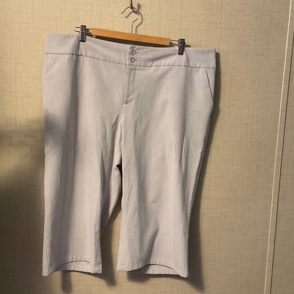 Stylish light gray capris. Features button detail. Perfect for casual wear.