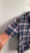 Casual plaid shirt with short sleeves. Features a button-down front. Ideal for everyday wear.